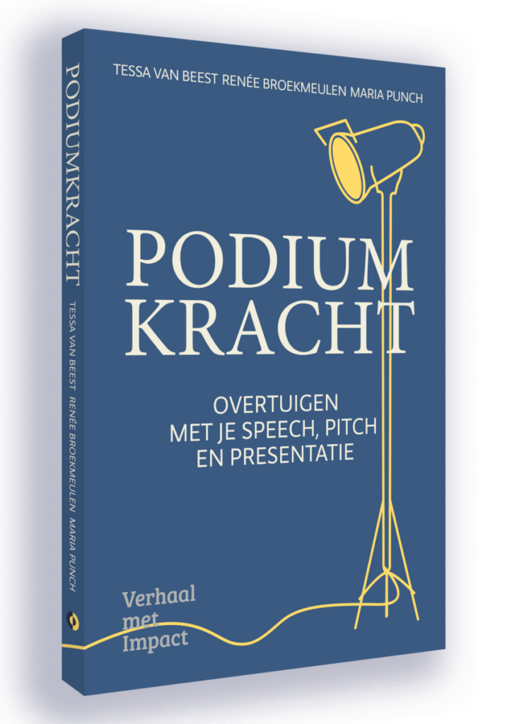 ‘Wanneer schrijf jíj nou eens boek?’ Die vraag krijg ik heel vaak van auteurs die ik train en adviseer bij hun keynote, media-optreden of TED-talk. Eindelijk kan ik zeggen: het is zover! Nog heel even en dan ligt Podiumkracht in de winkels. Een complete gids over spreken in het openbaar, geschreven met twee zeer gewaardeerde collega’s Tessa van Beest en Renée Broekmeulen. Zij zijn beiden speechschrijvers en trainers met een lange staat van dienst. Samen hebben we meer dan 50 jaar ervaring in het begeleiden van sprekers naar het podium: van pril idee tot daverend applaus.